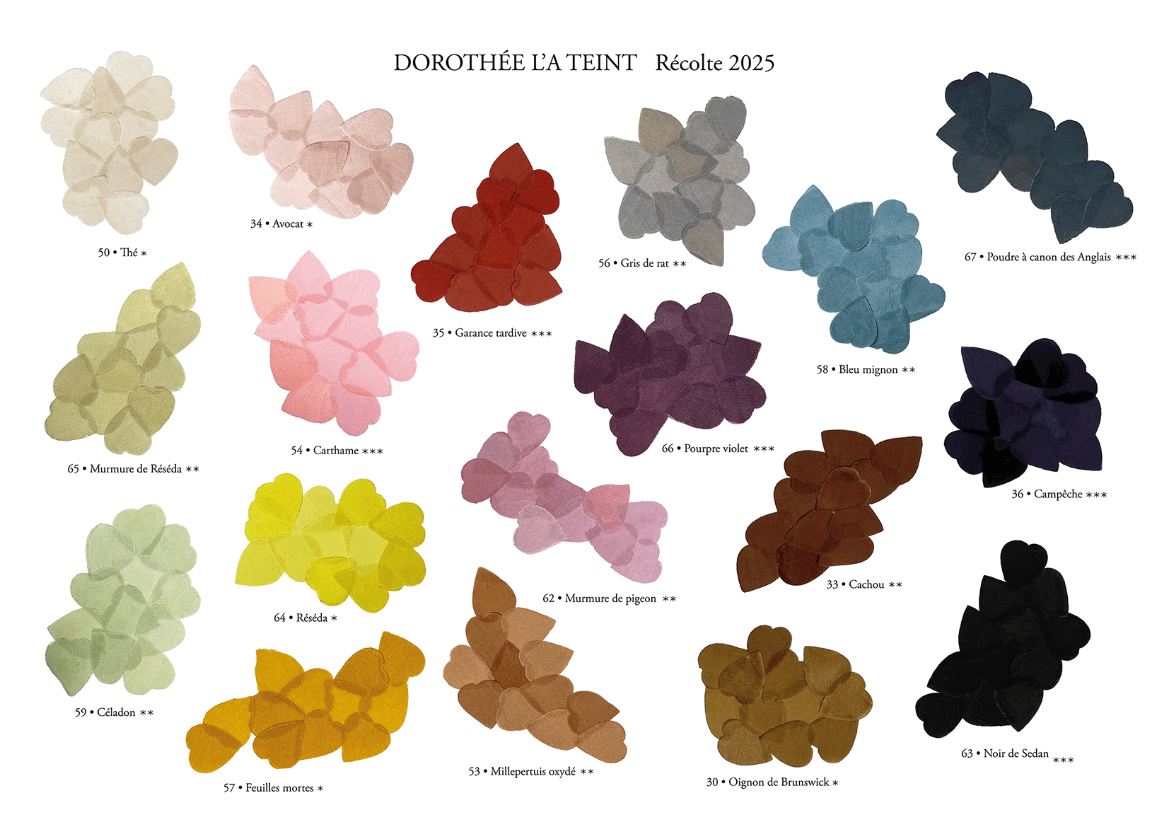 To choose the colour, select a shade from the silk petals garden of natural dyes, harvest 2025.